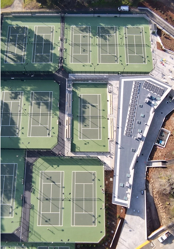 Demolition of existing park facilities, clubhouse and tennis courts. Construction of a new 20 court tennis center with new state of the art 7,800 SF clubhouse and pro shop with stadium style feature court. The facility includes lockers and changing rooms, restrooms and site furnishings, lighting and spectator seating (both inside and out). The AIA California Council awarded the Tennis Center their Leading Edge Award, just one of ten projects to receive Design Awards from the statewide chapter this year. Extensive asphaltic concrete work.