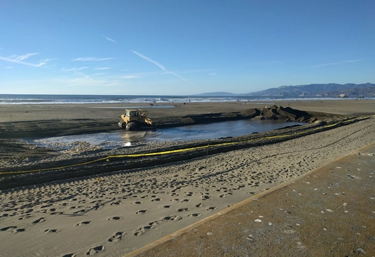 Erosion mitigation and protect critical wastewater infrastructure, facilities, and assets at South Ocean Beach in San Francisco. To accomplish this, this three year contract will selectively relocate sand from North Ocean Beach, transport along the Great Highway and strategically place sand and erosion mitigation measures annually at South Ocean Beach, San Francisco, California.